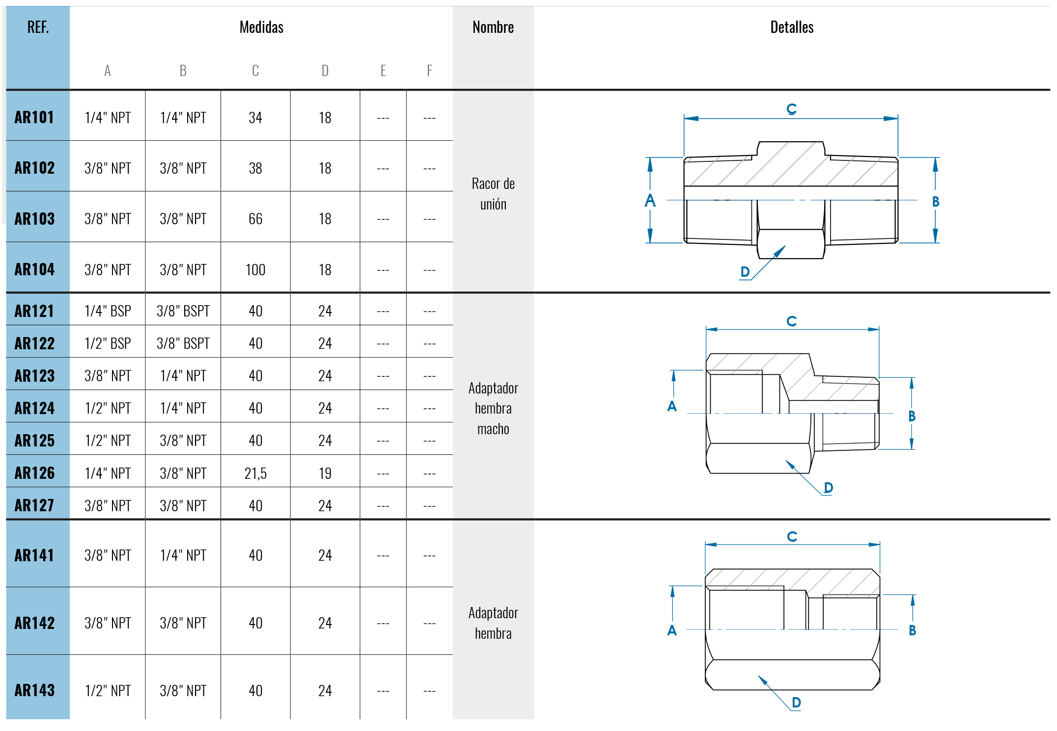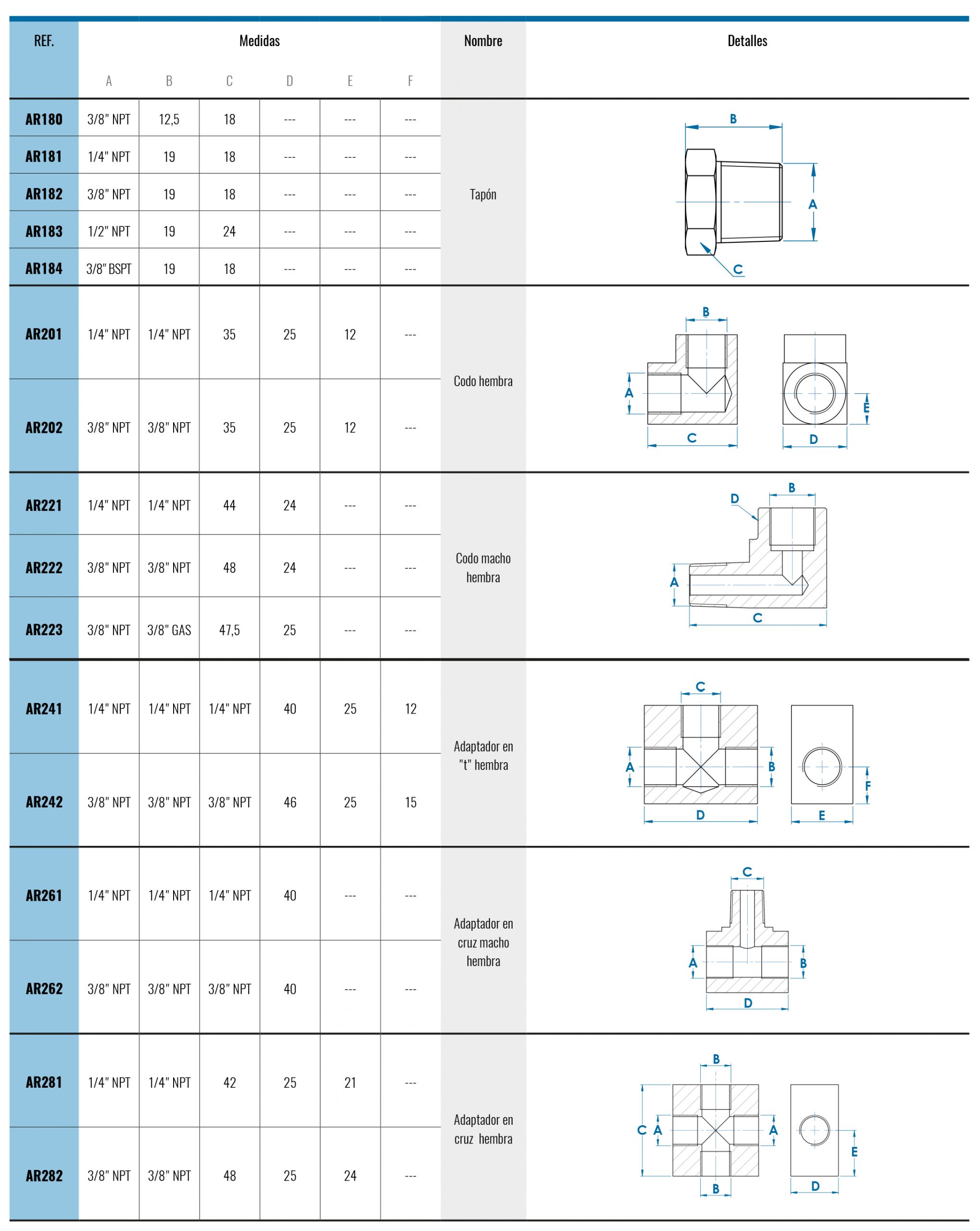 especiales de rosca y dimensiones bajo demanda.